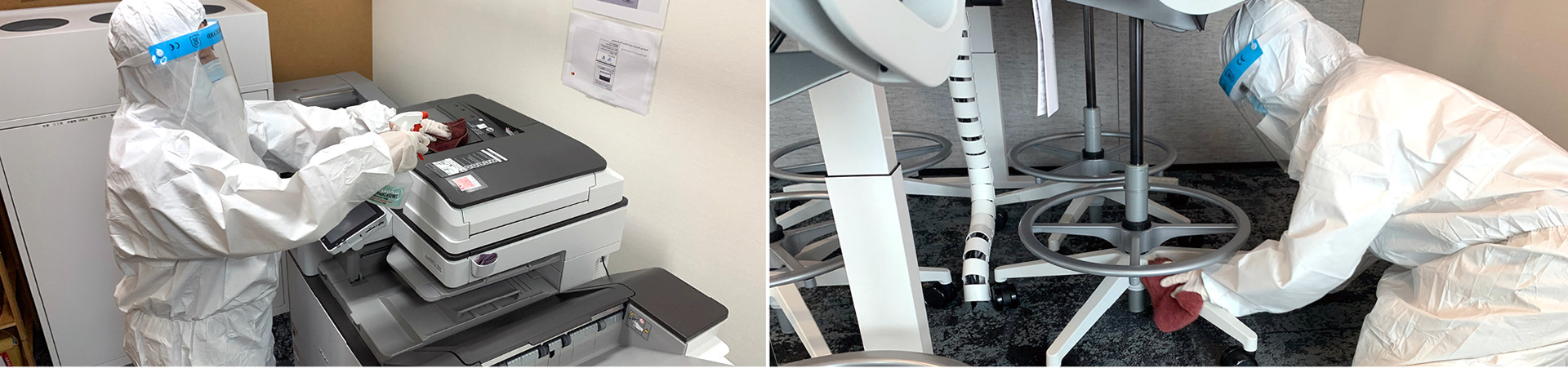 Our personnel will arrive at the perimeter within 4 hours after being notified of a confirmed COVID-19 case. All personnel will enter the perimeter in full personal protective equipment, including coverall suits, safety shoe covers, respirators, and gloves, and start applying higher ppm Timsen® disinfectant through ULV fogging method in all indoor areas.