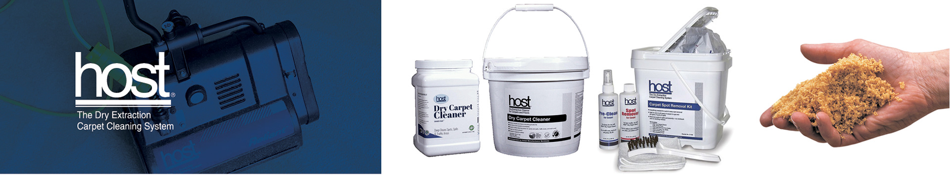 HOST 地毯乾洗粉產品是由數百萬個吸水海綿組成的柔軟天然產品。而這些獨特設計的海綿需用特定量的水和生物成分來進行潤濕。HOST 產品包含並控制所有必要的成分,以達到保持水溶性並去除油性污垢。使用機器在地毯纖維周圍刷洗,使它們接觸到受污染纖維的所有表面,破壞汙垢沾粘結構並擦去污垢。使用 HOST乾洗系統可以防止污水滲透。地毯不會像用濕法清潔時那樣快速重新弄髒,因為沒有粘性殘留物可以抓住地毯纖維也沒有不受控制的髒水造成再次污染 。由於 HOST 系統不會導致重新弄髒,因此定期、頻繁地吸塵有助於使地毯保持更長時間的清潔。