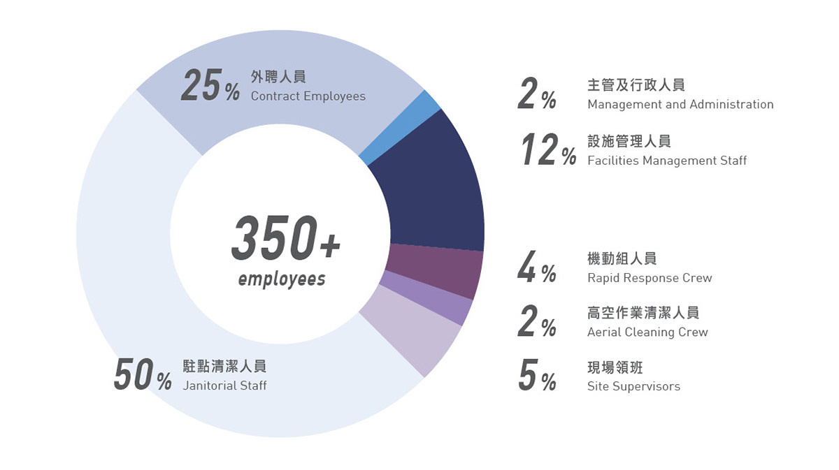 本公司自成立以來便設立機動組,多年來深得客戶的喜愛及信賴。編制 12 人的機動組服務年資為 14 - 30 年,具有各項証照且經驗豐富、配合度極高。任何時候客戶有臨時狀況及需要,本公司一定會在 1 - 2 小時內派機動組人員趕到現場了解情況並立即處理。